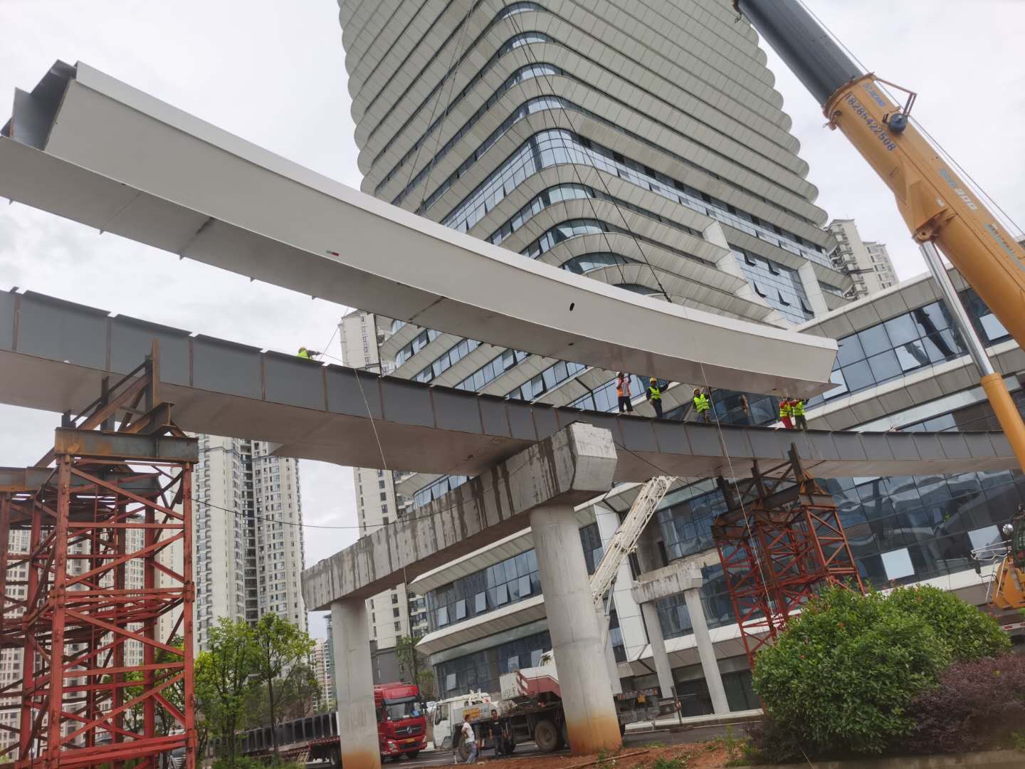 2020年7月3日,我司承接的“中鐵四局——貴州省黔東南州凱里市大型跨線市政鋼橋”工程目前已經順利完成廠內制作、長距離大件運輸工作,現場吊裝施工作業正有序進行中。