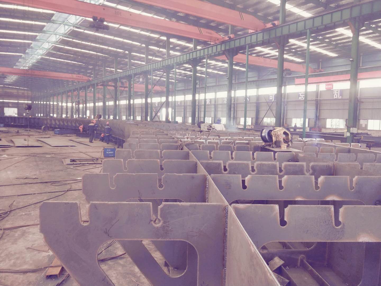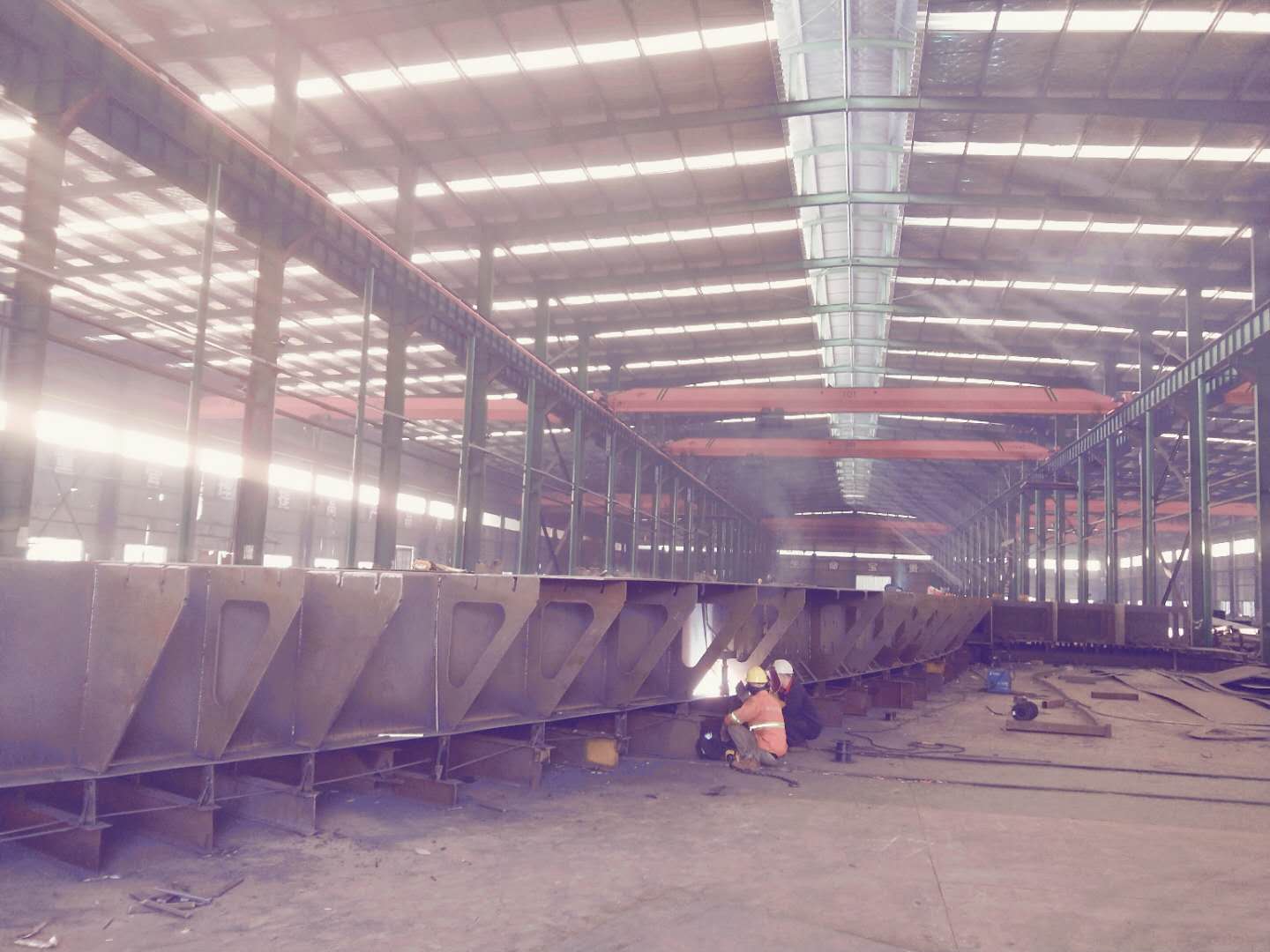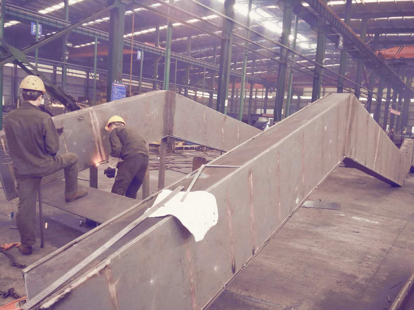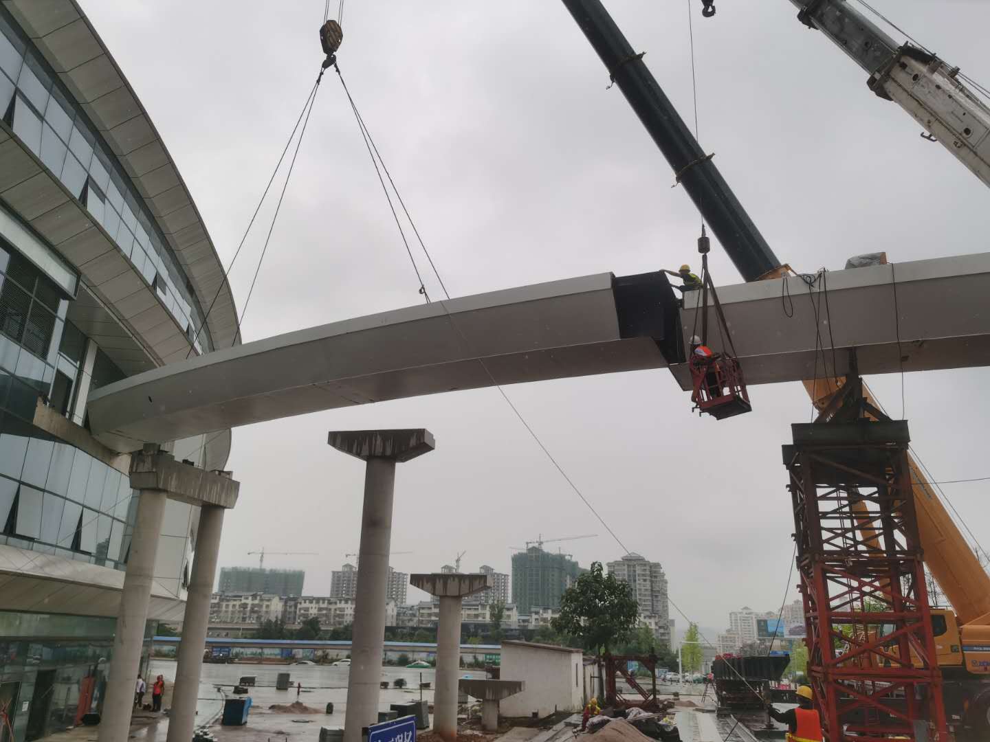 凱里市大型跨線市政鋼橋系大跨度、弧度異形、曲面鋼箱體主橋+折線箱體式梯道的綜合特殊結構類型,在工藝技術、車間組裝生產、大件超限運輸、施工組織和周期、安全文明作業等方面,存在諸多難點。為滿足項目建設目標,我公司從技術準備、生產工藝、施工組織角度做出充分準備,自5月下旬起,管理人員、技術人員和生產員工頂著酷暑日夜趕工,在確保技術工藝、生產質量、運輸保障、安全施工的條件下,快速地促成了現場吊裝施工計劃目標的達成。